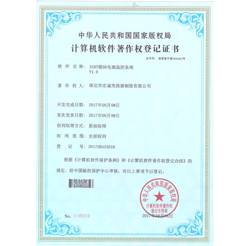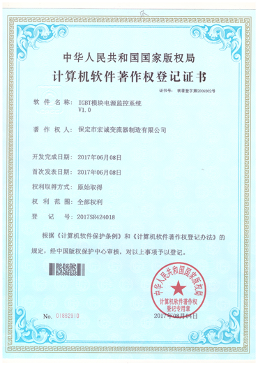 計算機軟件注冊權(quán)登記證書——IGBT模塊電源監(jiān)控系統(tǒng)V1.0