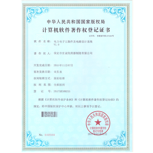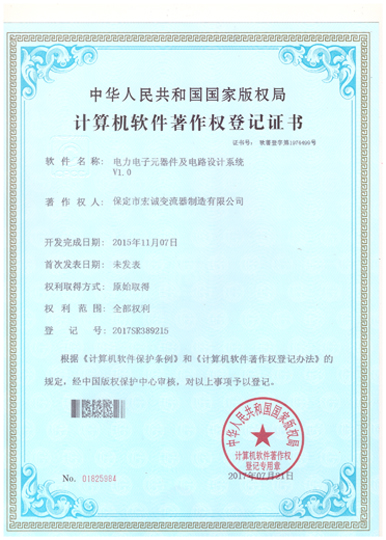 計算機軟件注冊權(quán)登記證書——電力電子元器件及電路設(shè)計系統(tǒng)V1.0