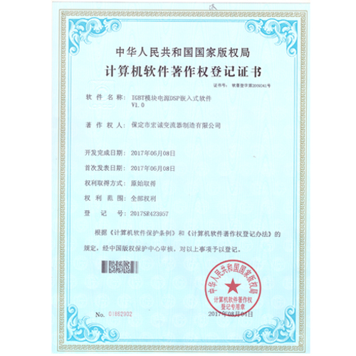 計算機軟件注冊權(quán)登記證書——IGBT模塊電源DSP嵌入式軟件V1.0